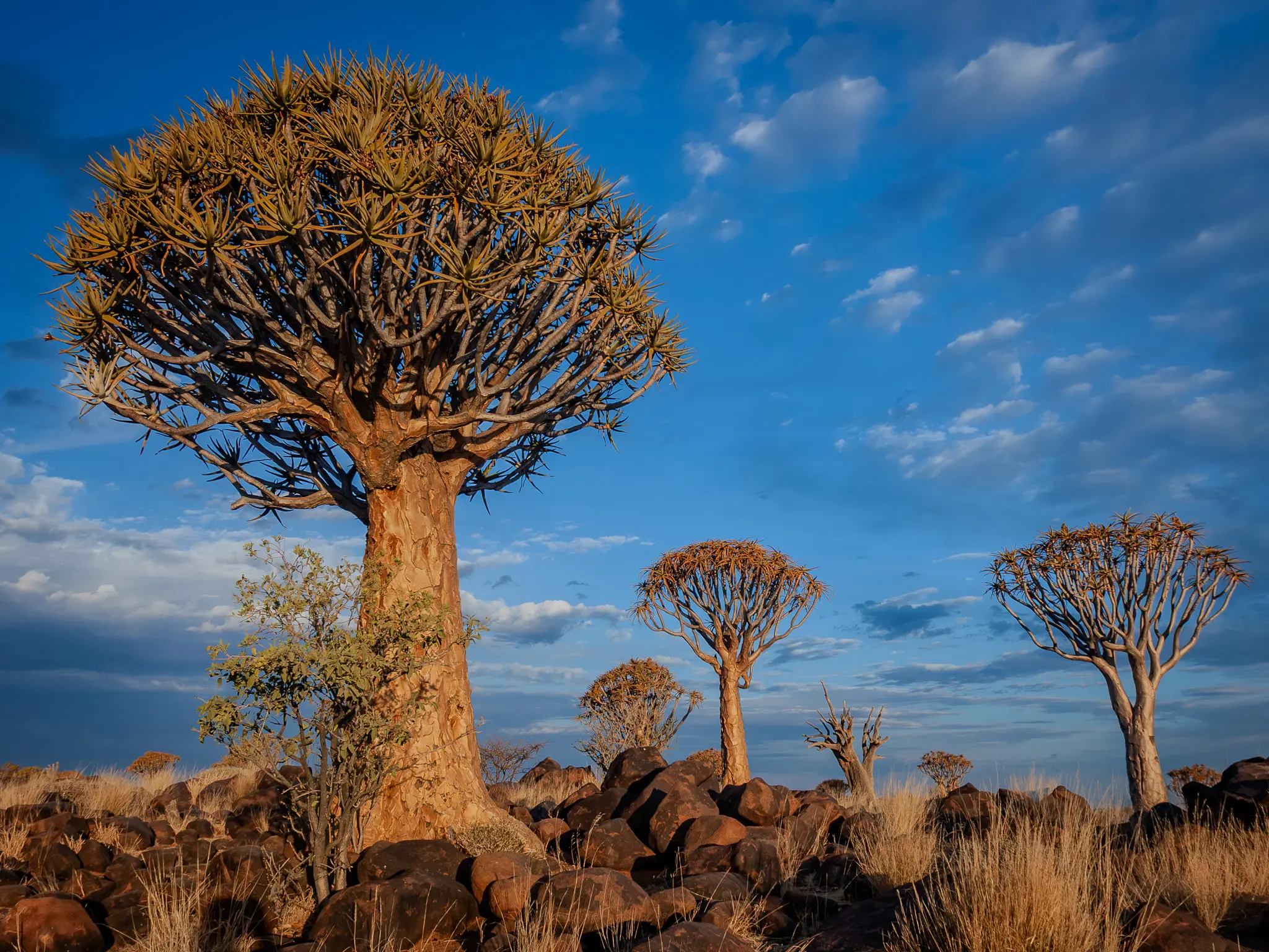 Ruszamy w dalszą drogę, zatrzymując się w okolicach Keetmanshoop. Czekają tu na nas dwa unikalne plenery fotograficzne: Quiver Tree Forest (Las Drzew Kołczanowych): Zobaczymy około 250 okazów tych niezwykłych sukulentów, które są symbolem południowej Namibii. Ich złocista kora i korzenie skierowane "do góry" tworzą baśniowy krajobraz. Nazwa pochodzi od Buszmenów, którzy z gałęzi tych drzew robili kołczany na strzały. Giant’s Playground (Plac Zabaw Gigantów): Labirynt ogromnych bloków skalnych, które wyglądają, jakby zostały niedbale poukładane przez olbrzyma. Te formacje z dolerytu mają około 180 milionów lat.