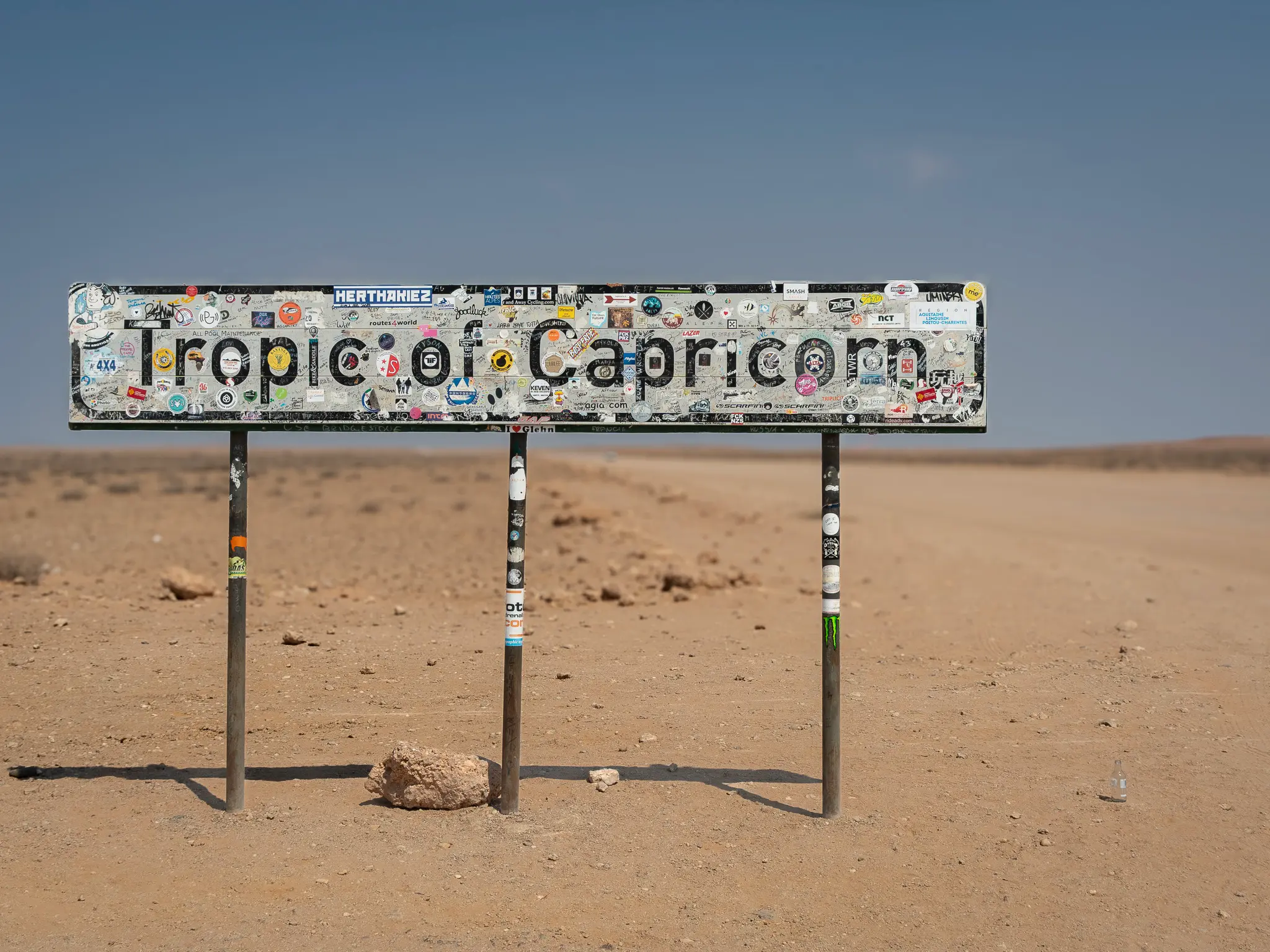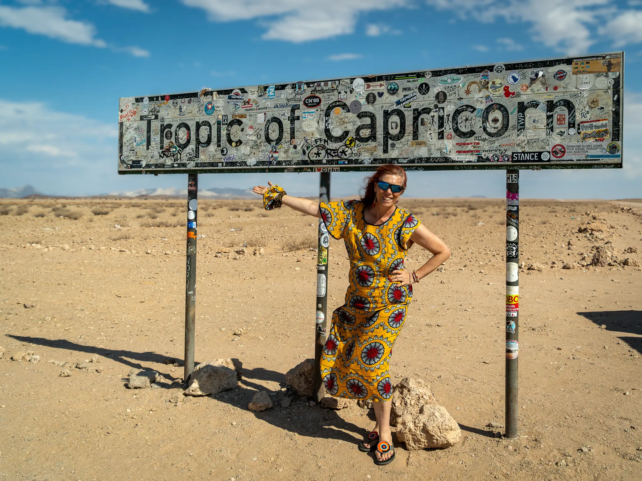 Dalsza droga prowadzi przez Zwrotnik Koziorożca (obowiązkowe zdjęcie przy znaku!) oraz spektakularne przełęcze Gaub i Kuiseb. Krajobraz zmienia się tu diametralnie – pofałdowane, księżycowe skały pasma górskiego Naukluft robią niesamowite wrażenie.