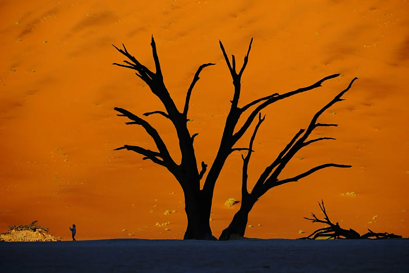 Celem podróży jest obszar najstarszej pustyni świata. Dojeżdżamy do miejsca, które jest marzeniem każdego fotografa. Znajdziemy tu jedne z najwyższych na świecie, intensywnie czerwonych wydm, które o wschodzie i zachodzie słońca mienią się niesamowitymi odcieniami złota i pomarańczy. Jutro czeka nas wspinaczka na wydmy i wizyta w Deadvlei, a dziś wieczorem – odpoczynek z widokiem na pustynię.