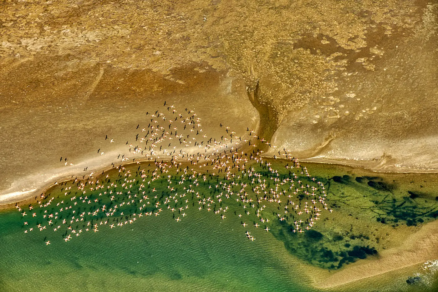 Flamingo Bay: Po drodze zobaczymy tysiące różowych flamingów żerujących na płytkich wodach solniska.